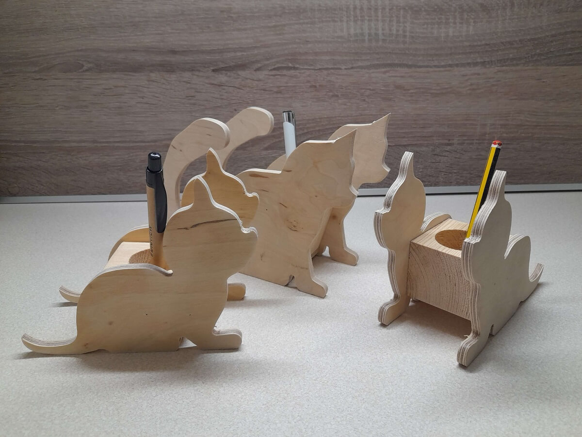 Zorganizuj swoje biurko z uroczymi kotkami – drewniany organizer na biurko