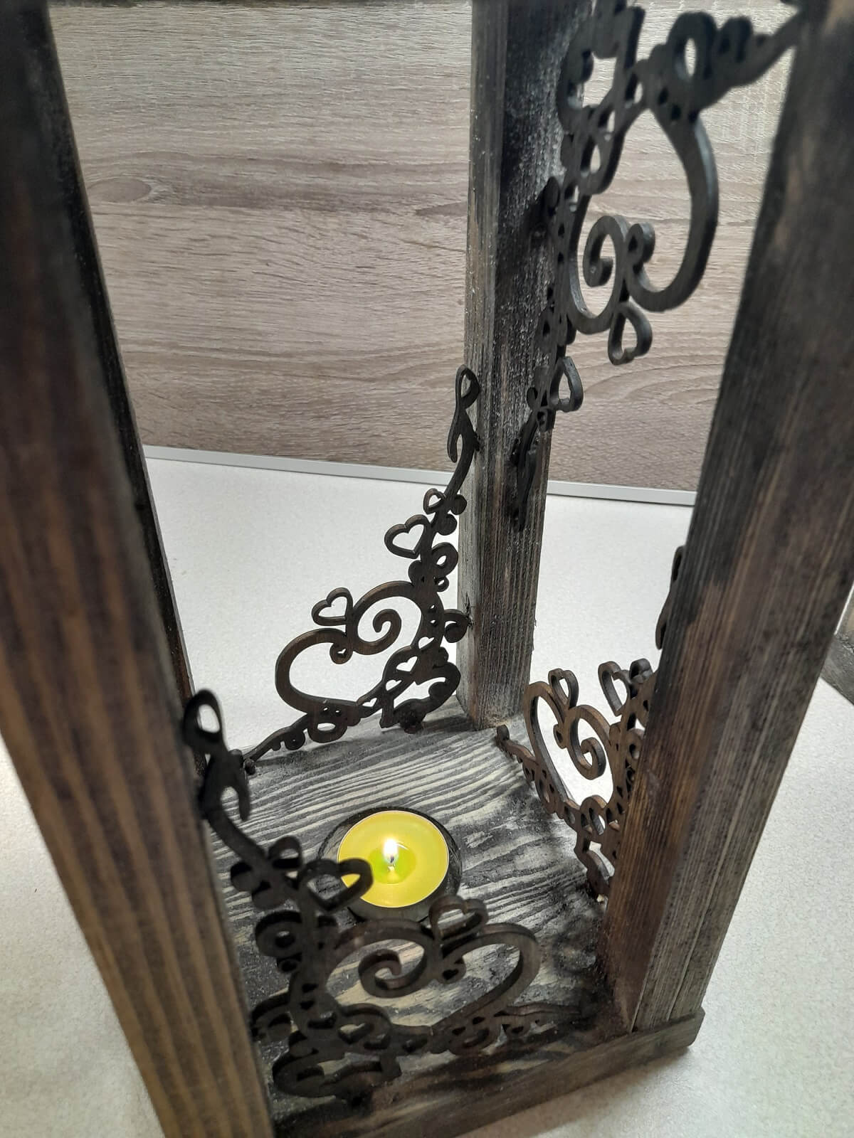 Jeśli szukasz oryginalnej ozdoby do domu lub na taras, to ażurowa latarnia będzie idealnym rozwiązaniem. Wykonana ręcznie z dbałością o każdy szczegół. Rzuca niesamowite cienie od zapalonej świecy. Idealna na długie letnie wieczory na tarasie, ale także na każdą inną porę roku.