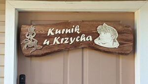 Projekt jest autorski. Logo wykonane jest ręcznie z dodatkami wypalonymi na drewnie. Razem daje to unikalny i niepowtarzalny efekt.